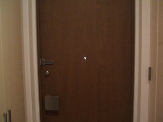 ![]() マンションですが、玄関ポーチがあり、ドアが奥まったところにあるので、朝日が覗き窓にあたるチャンスはほんの少ししかありません。時期、時間が変わるともう無理です。 |