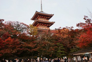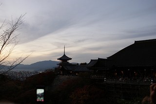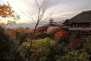 京都の東山、清水寺はたびたび訪れます。ただ観光客が多いのも難点です。この紅葉の季節に合わせて、夜間のライトアップを見ようと思い、夕方に到着しました。しかし、3連休の影響もあり、あまりに人が多く、夜間の拝観はあきらめました。夕暮れの紅葉の写真だけを撮るにとどめました。週日に、どこかで早く帰る日を作って、人出が多くない日に訪れたいと思います。