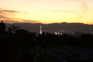 ![]() 京都の市街地。京都タワーが浮かんで見えます。 |