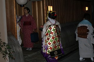 清水寺から五条の方に下っていきました。途中、御茶屋がたくさんある通りを抜けました。ちょうど舞妓さんが出勤?に向かいところに遭遇しました。