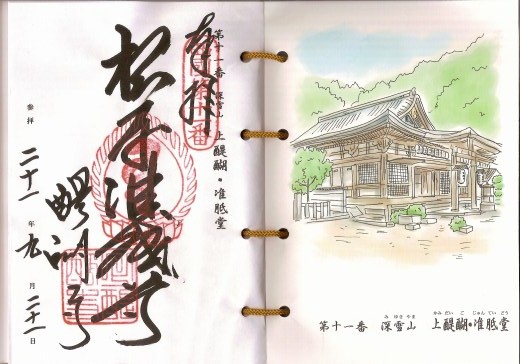 世界遺産に登録されている醍醐寺です。駐車場は旧奈良街道沿いにありますが、お寺の敷地が山上まであり、広大なお寺です。山の上まで歩いて行くと1時間以上かかりそうです。2008年の8月に落雷により火災があったことは記憶に新しいところです。国宝の金堂でご本尊の准胝観音様のご開帳がされていました。思っていたより小さな観音様でしたが、とてもありがたい気持ちになりました。金堂内で納経帳に記入してもらいました。真言宗醍醐派の総本山でたくさんの国宝があるのですが、この日に3つの札所を回る予定でしたので、また季節の良い時にゆっくり訪れたいと思います。