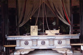 ![]() 普通は、このような感じで、仏様を見ることができません。紐は観音様につながっており、この紐に触れることで観音様と縁を持つと言われています。 |