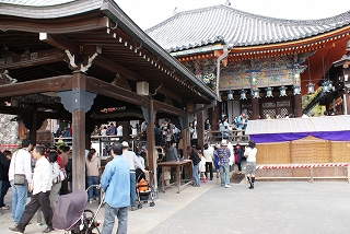 さすがにメジャーなお寺です。西国三十三ヵ所参りの人だけではなく、多くの人がお参りに来ていました。節分の時は宝塚歌劇団の生徒が豆まきをすることでも有名です。彼女たちが扮する観音様が三毒(貪(とん/むさぼり(欲張る心))・瞋(しん/いかり(怒る心))・痴(ち/おろか(迷う心)/人間の諸悪の根源である)の象徴・三匹の鬼をさとし、福・禄・寿に変身させるというショーが行われます。