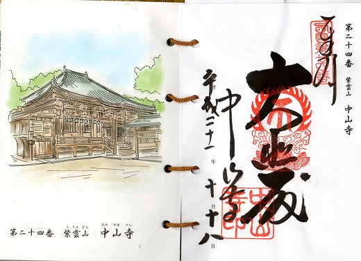 2009年10月18日、なかやまさんに行ってきました。ここは安産のお寺で、そういえば一番上の子の時(20年以上前)に腹帯をもらいにいったことがありました。ちょうど七五三まいりの季節で、ご祈祷のために多くの家族が参拝していました。山門にはわらじがたくさんかけてありましたが、ここで新しいわらじに履き替えて、古いわらじを奉納したというところから来ているようです。また足の悪い人のためにエスカレーターなども境内にありました。