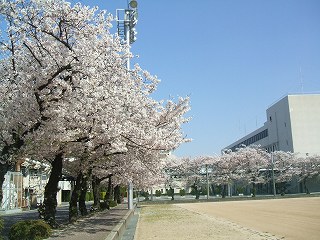 会社のグランド横の桜も満開になりました。2009年はこの時期、雨が降らないので花びらが長くもっています。