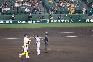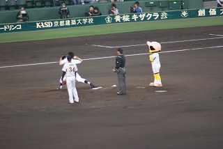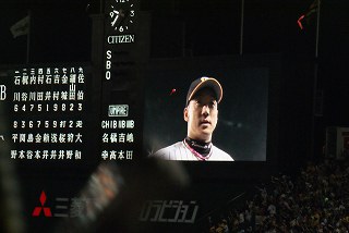 始球式はROOKIES(ルーキーズ)の映画の宣伝も兼ねて、川藤監督役の佐藤隆太。なかなかの速球を投げていました。まさか、この試合でキセキが起きるとは・・