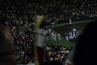 ところで、4月30日に改装された甲子園に行きました。対戦相手は横浜ベイスターズです。9回の裏、ツーアウト、ランナーなし。0−2で負けており、敗戦濃厚。そろそろ帰ろうとしたその矢先、代打今岡が執念のヒット。さらに平野が右中間を破る3塁打。さらにさらに関本が同点にし、続く鳥谷も執念の4連打。お膳立てはできました。そして金本の一振りで、奇跡の逆転サヨナラ。もう興奮冷めやらない、すごいすごい試合でした。何事もあきらめてはいけません。こんなことが起きるのです!!