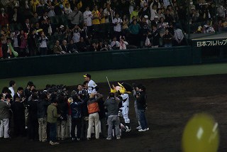 誰もがあきらめていた9回裏2アウトからの反撃開始です。4連打で追いつきます。そして最後はアニキ(金本6)の逆転サヨナラヒット。甲子園全体が歓喜乱舞。劇的な試合でした。こんなこともあるのですね。