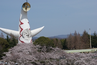 ![]() 桜並木に囲まれた太陽の塔 |