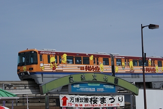 ![]() 4両ともチキンラーメン広告のモノレール |