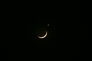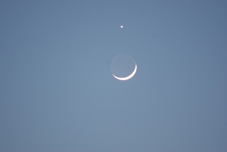 ![]() 日没直後の明るい夕空に浮かぶ月と金星 |