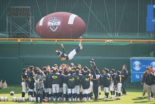 大学の方は、立命館大学と早稲田大学の対戦です。関西学生アメフト選手権は、稀にみる接戦で、立命館がプレーオフで一歩出たという感じでした。その勢いで早稲田大学を圧倒しました。正月の社会人優勝チームとのライスボウルが楽しみです。今年の秋は、アメフト観戦ざんまいをしました。12/23のクリスマスボウルも見に行きましたので、結局、中学、高校、大学の日本一を決めるゲームを全て見たことになります。