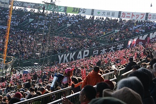 ![]() 1塁側が立命館の応援席です。満席です。 |