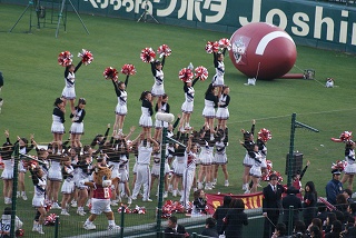 アメフト大学日本一を決める甲子園ボウルが12月19日に阪神甲子園球場で開催されましたので観戦してきました。2008年、2009年のシーズンオフは甲子園の改修があったので、ここ甲子園で行われるのは2年ぶりです(この2年間は大阪の長居球技場)。従来、甲子園の外野の芝を利用してフィールドにしていましたが、今回は内野のマウンドを取って内野にも天然芝を敷き詰めて、今までとは違う雰囲気でのゲームとなりました。