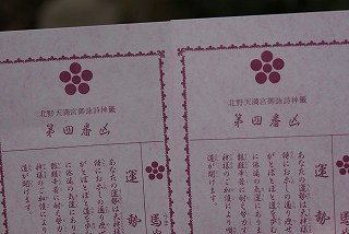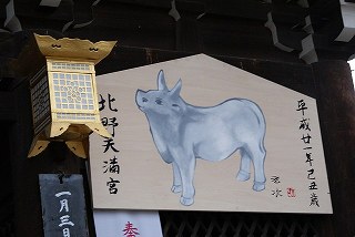 本年もよろしくお願いいたします。我が家は2009年1月3日、京都の北野天満宮に初詣に行きました。今年は丑年ですので、とても多くの人が訪れていました。恒例のおみくじですが、娘二人は、同じ四番の凶を引き当ててしまいました。なぜか、周りの人も皆さん同じ凶を引いていました。もう笑うしかありません。(なお、昨年は京都の八坂神社で凶を引いています。)
