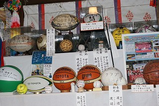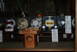 北野天満宮から今出川通りを東に烏丸通りまで歩きました。その途中にある白峯神社にも寄りました。ここはスポーツの神様として有名なところで、日本各地から大会で優勝したボールが奉納されていました。息子や娘もケガのない一年を祈願しました。